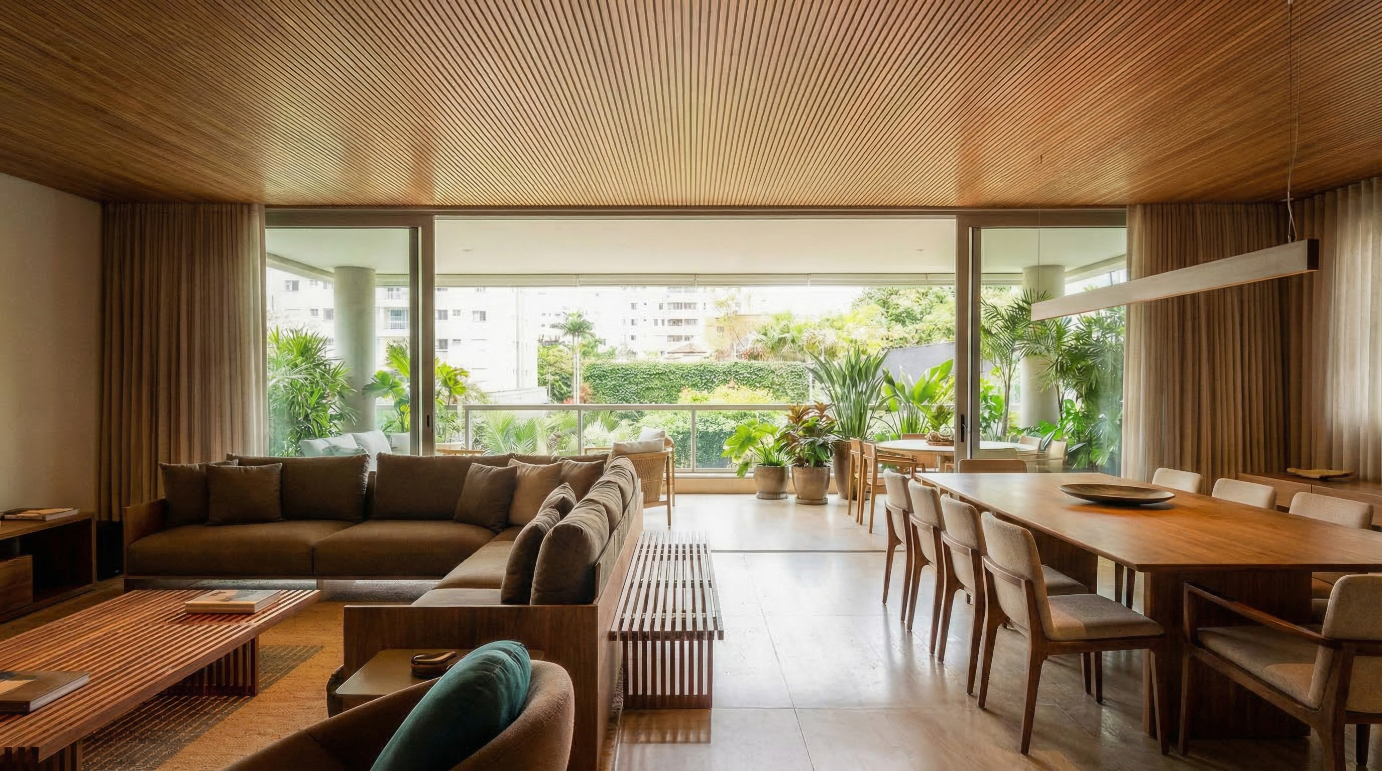 Interiores que transmitem a experiência de morar. Cada detalhe de luz, material e mobiliário pensado para emocionar o comprador.